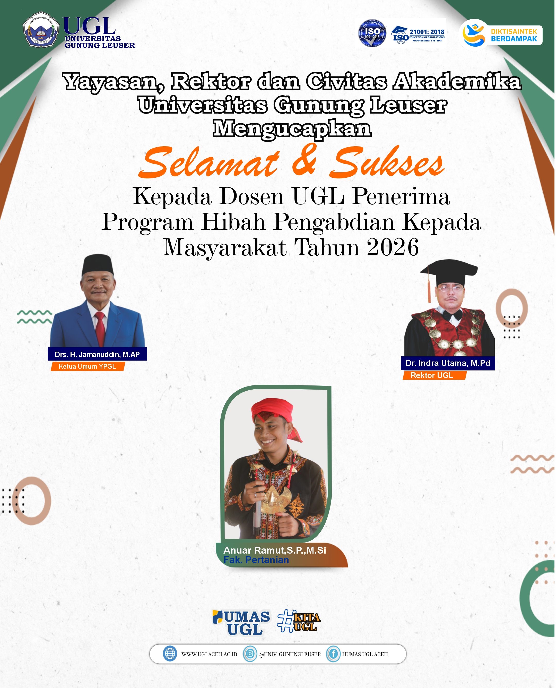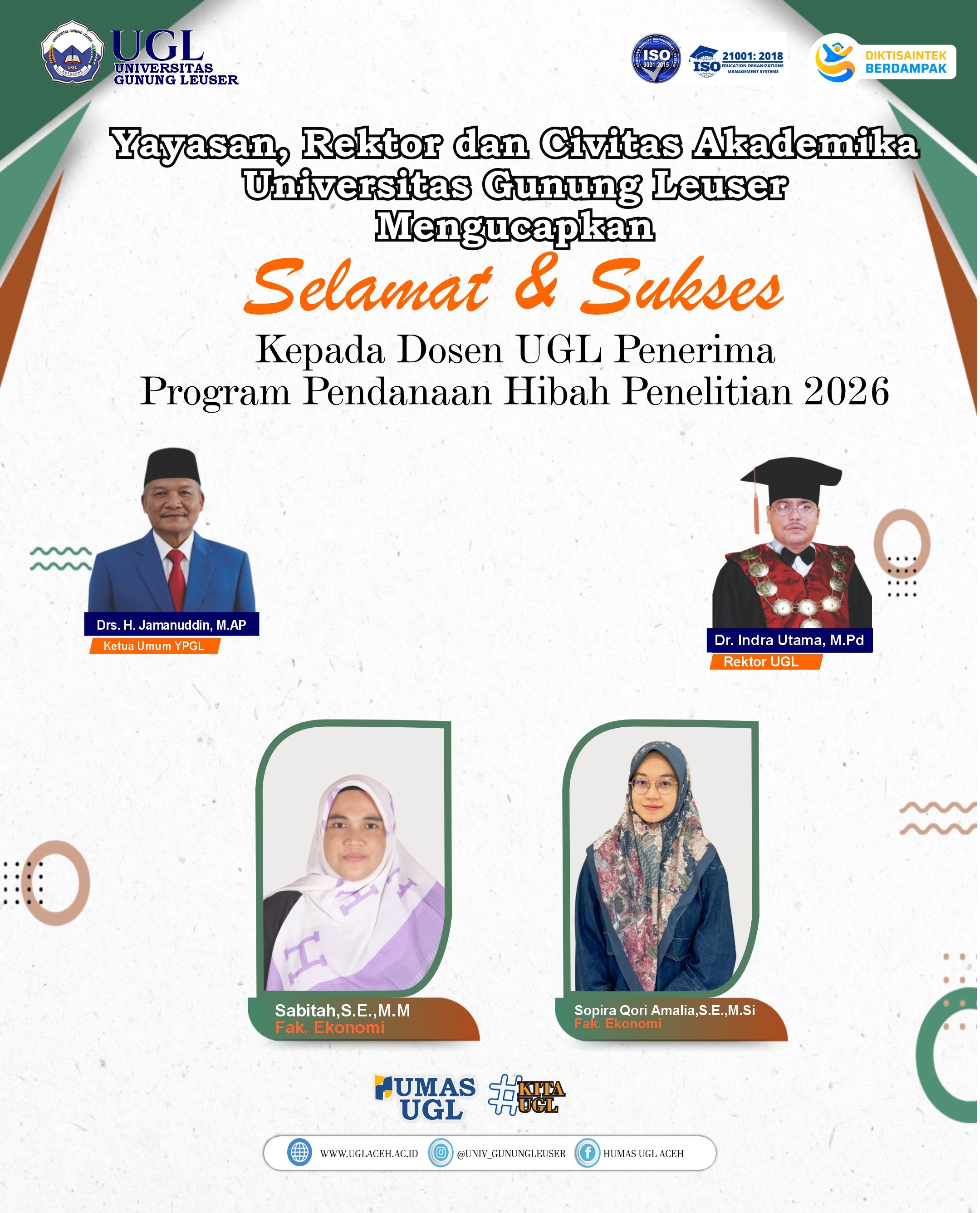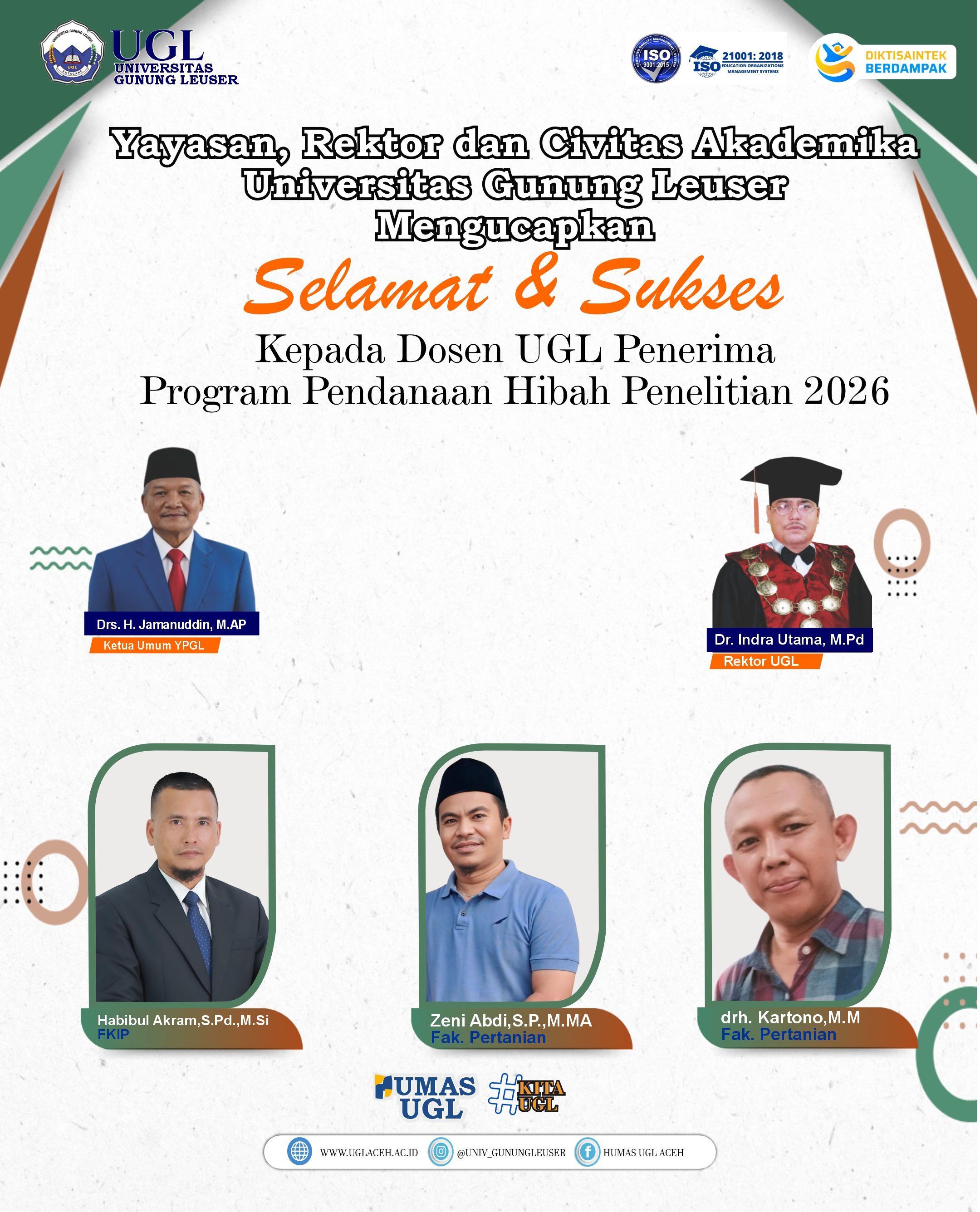 April 14, 2026 by admin Humas UGL- Alhamdulillah, Selamat dan Sukses Kepada 6 Orang Dosen UGL yang berhasil Lolos Sebagai Penerima Program Pendanaan Hibah Penelitian dan Pengabdian Kepada Masyarakat Kemdiktisaintek Tahun 2026. Previous articleWujudkan Aceh Tenggara Hebat, 145 Mahasiswa KKN UGL di Lepas ke Kecamatan Ketambe